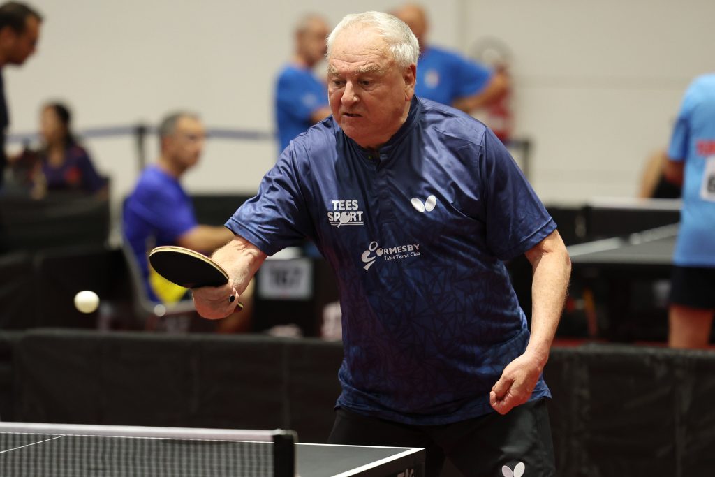 They include Denis Neale, who is the last English man to win an individual medal at the World Championships – a Mixed Doubles bronze alongside Mary Wright in 1969. He is competing in the MS80 category and won his three group matches on day one of the competition, including a superb 3-2 (9-11, 9-11, 11-8, 11-8, 11-3) comeback victory over Dimitrije Bilic of Germany.