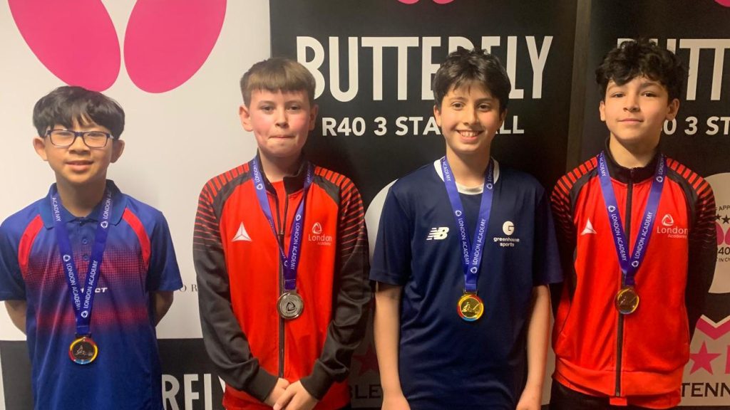 In the Under-15 Boys, Greenhouse’s Parsia Ahsani won his second gold medal in a row when he beat London Academy’s Connor Godley in the final. Having lost the first set to the left-hander, Parsia came back to win two in a row before Connor levelled in the fourth. The fifth, however, was settled quickly with Parsia winning 11-2 to take the title.