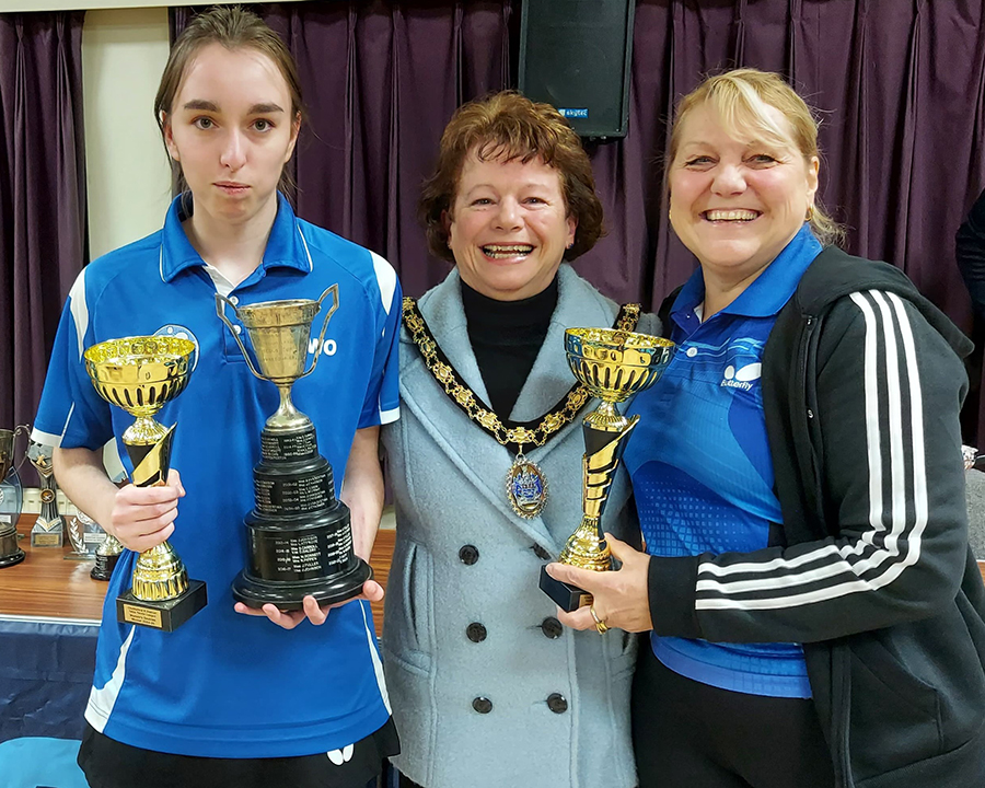 Despite being on the opposite side of the table in the final of this event last year Dawn Baldry & Alesha Ellis-Austin joined forces for victory in the ladies’ doubles over the sister duo of Francesca & Freya Hart.