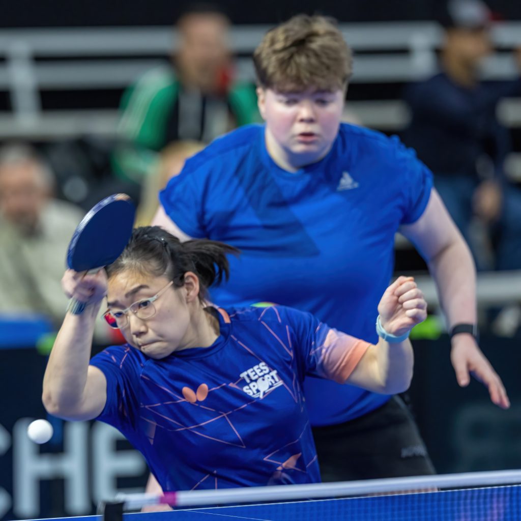 Sophie Earley & Tianer Yu also went out, going down 3-1 (11-6, 8-11, 11-7, 11-7) to third seeds Isa Cok of France & Slovenia’s Ana Tofant.