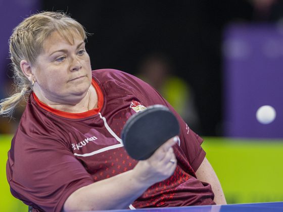 In the same category, Dan Bullen was defeated in three straight by Nigeria’s Isau Ogunkunle, finding his opponent’s forehand a particularly potent weapon. Bullen saved one match point in that one.