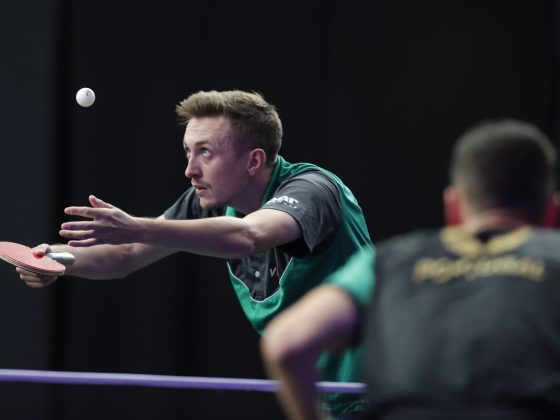 Drinkhall couldn’t make it past his first match in the men’s singles, losing 3-2 to Daniel Habesohn but got his revenge when he and Pitchford beat him and his parter Robert Gardos in the double’s quarter-finals.
