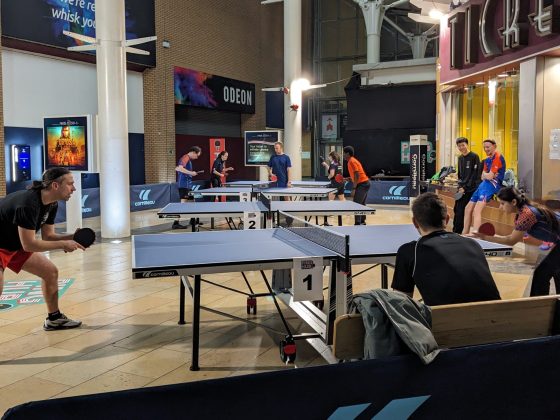 The location, in the heart of Manchester with good transport links, has proved to be very successful, with around 40 participants attending daily during the 10 hours of opening, equating to approximately 2,680 participants in just over two months. (25/1 – 31/3). A focus on good quality equipment (seven ITTF approved tables) and lighting has broadened the appeal to both social and club players.