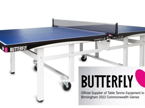 “We are also delighted that the Butterfly Centrefold Rollaway table tennis table with the 25mm anti-skid top has been selected for another major Championship together with our Butterfly R40 3 Star ball.”