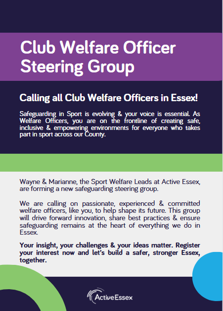 Active Essex are forming a new safeguarding steering group in the county and would like to hear from Club Welfare Officers within table tennis clubs.