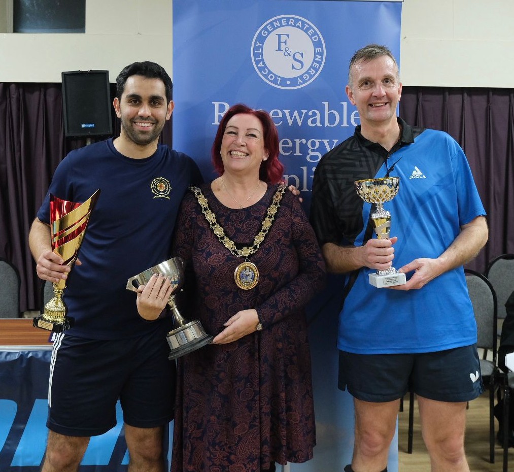 The Chelmsford & District League Committee were delighted to welcome the Mayor of Chelmsford – Councillor Linda Mascot, the Mayor’s consort Mr Ian Mascot, Chris Bryden – East Area Manager at Table Tennis England and Steven Funnell – director of F&S Energy – the sponsor of this year’s tournament.
