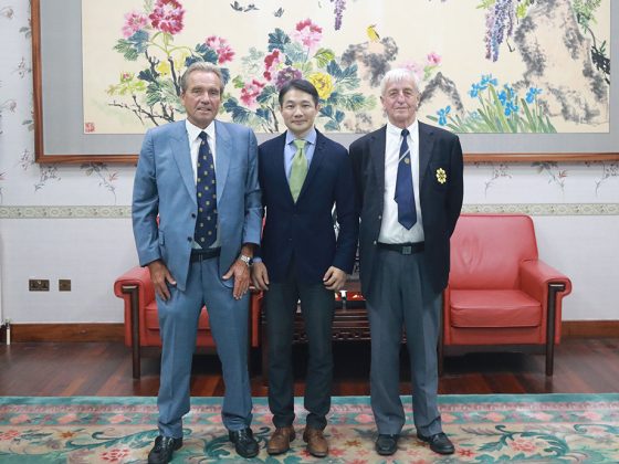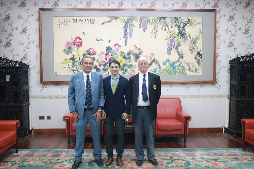 Alan Hydes (left) and Harvey Webb with Bi Haibo at the Chinese Embassy