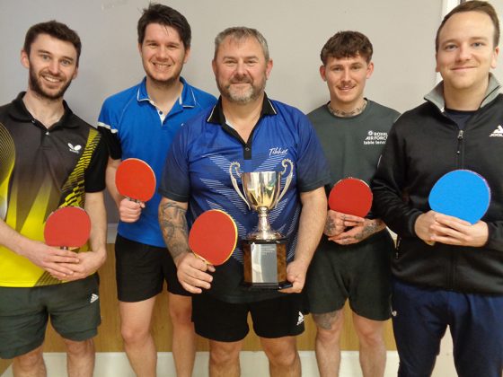 However, the eventual 5-1 score-line belied a final of quality and competitiveness, the Bobcats playing their part in providing the goodly number of spectators with an entertaining evening’s table tennis and surprising many with their high standard of play, well above their Third Division status.