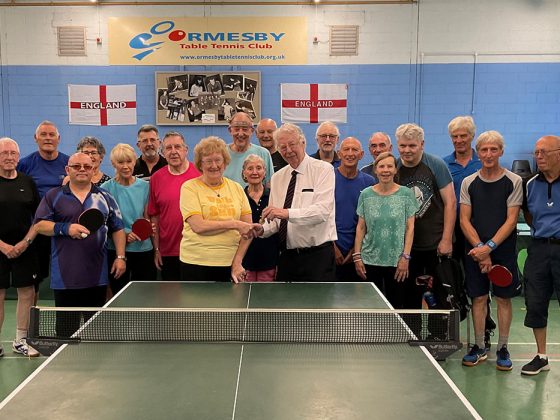 Ormesby stalwart Brenda Stephenson has been presented with her Table Tennis England Vice-President’s badge by club Chairman Alan Ransome OBE.