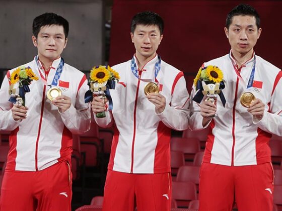 China celebrated a memorable, if predictable, double gold medal triumph as the Olympic Games table tennis drew to a close in Tokyo today.