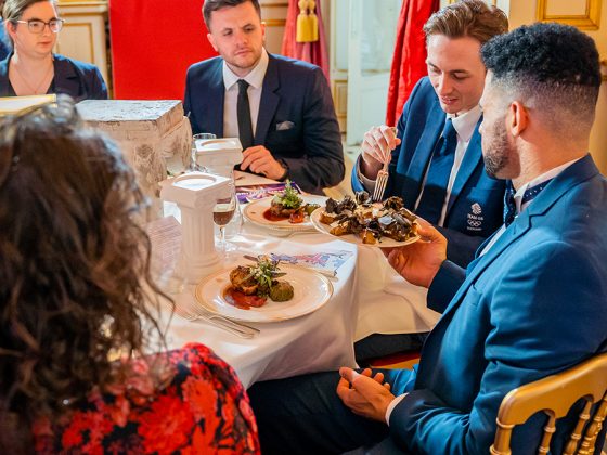 Ambassador Dame Menna Rawlings hosted the banquet, with 70 guests drawn from previous Olympic and Paralympic medal-winners, plus those who aspire to be on the podium in Paris this summer – including our very own Liam and Aaron.