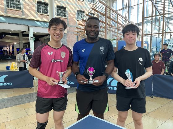 As a random, non seeded event, the draw couldn’t have worked out any better with a good spread of the better players in each group. In the semi finals Bertrand Tita beat Ho Hei Lam in a close fought match 9, 11, -3, 10 and Steven Gao beat Yuchong Liang 6, -11, -6, 6, 7, this led to a fabulous final with Steven Gao just pipping Bertrand Tita 9, 8, -9, -9, 11 to take the title and the £100 cash 1st prize.