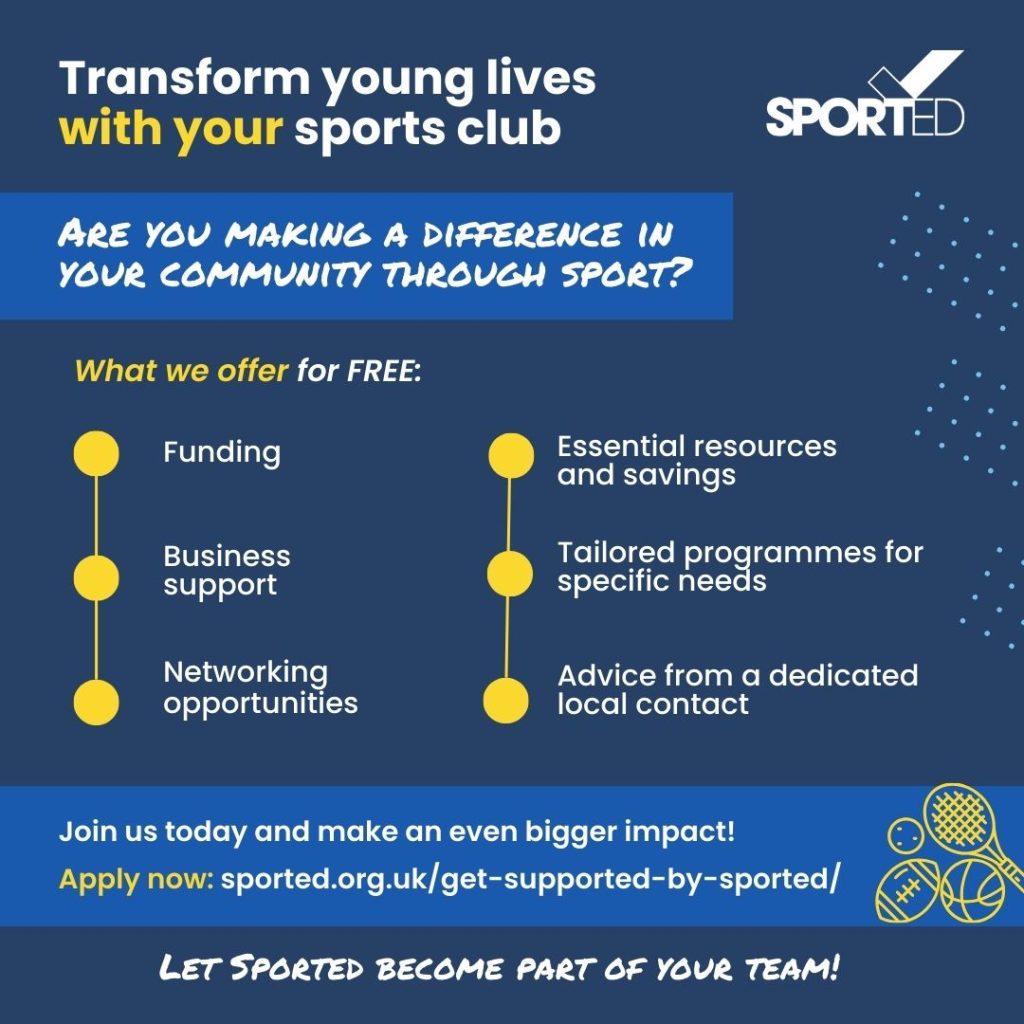 By providing free resources, services and access to grants, see how Sported can help you make a difference by visiting www.sported.org.uk