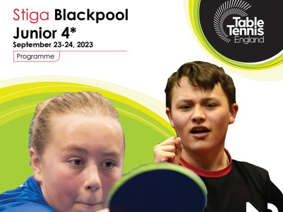 The event is at Blackpool Sports Centre over the weekend of September 23-24, features singles competitions at Junior, U17, Cadet and U13 levels, plus Cadet and Junior team events and a prize fund of £720.00