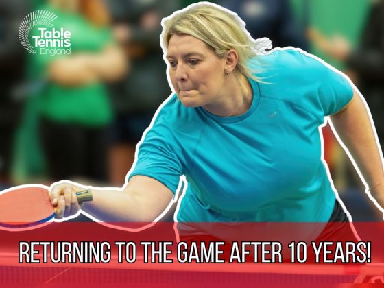 A great example of this is Kelly Skeggs, a former Table Tennis England Director who is back on the table for the first time in just over a decade.