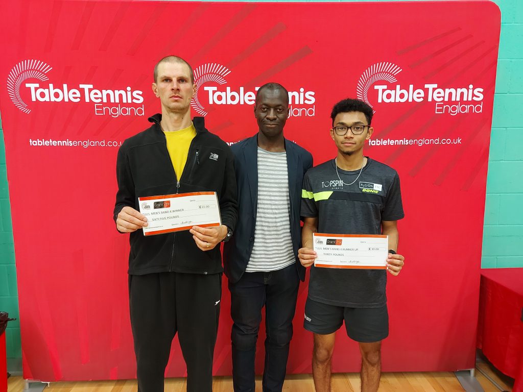 Callum Evans won Men’s Band 1 with a 3-0 (11-8, 13-11, 11-9) victory in the final against Shayan Siraj.
