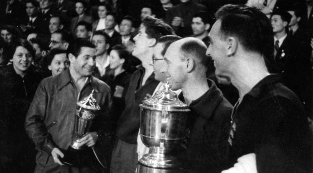 In the case of Austria and the USA, those triumphs remain their only Swaythling Cup victories. Austria’s team included the great Richard Bergmann, who would go on to represent England after coming to these shores to flee the Nazis and won 22 Championships medals in total, seven of them gold.