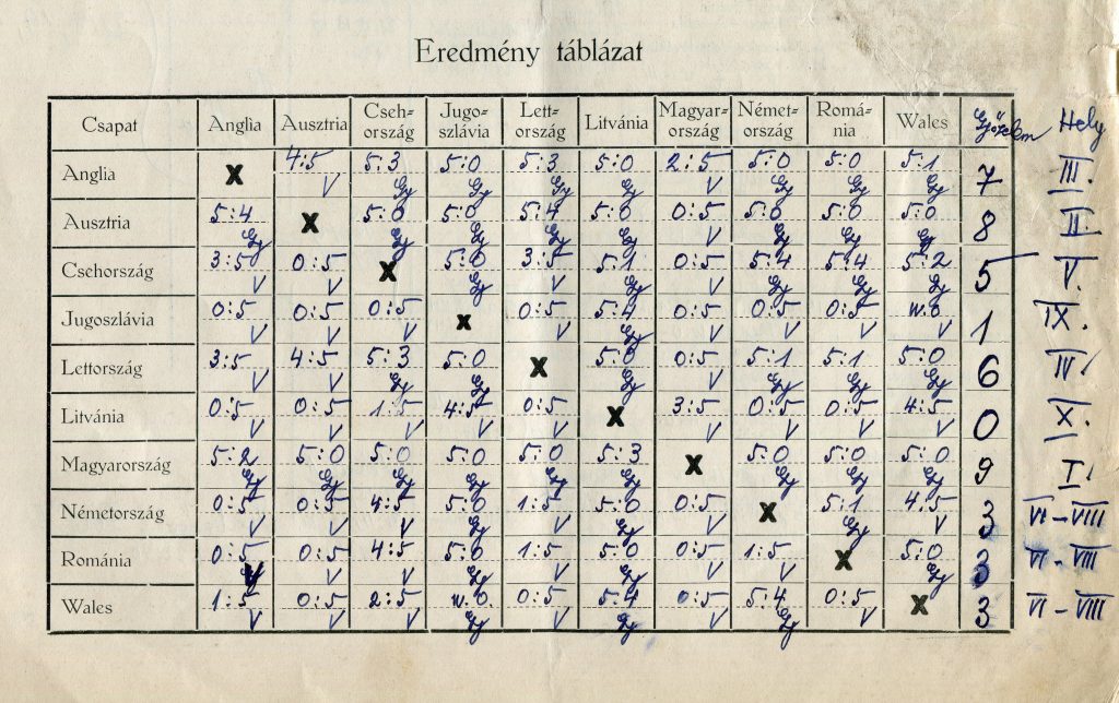The third World Championships took place in Budapest with 10 men’s teams taking part but no women’s teams. The England team comprised Charles Bull, Frank Burls, Adrian Haydon, Fred Perry and Frank Wilde with Ivor Montagu as the non-playing captain.