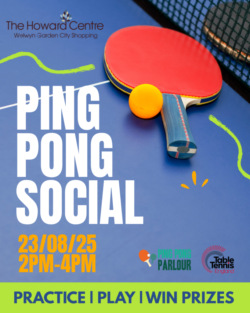 Ping Pong Social, a free public event and open to individuals of all ages, will take place on Saturday 23rd August between 2pm and 4pm in the Hertfordshire shopping centre. The event, organised in part to celebrate the opening of the new Ping Pong Parlour, will focus on providing fun and engaging games across 3 tables, with prizes being given out for the winners and runners up alongside a small prize for all participants being given a small prize for taking part.