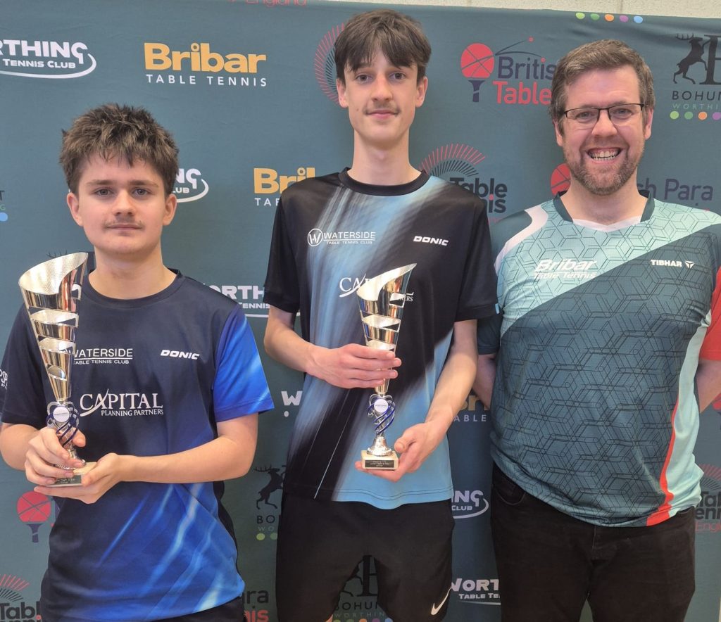 A smaller junior tournament featured seven teams. Waterside Warriors, represented by James Roberts and Daniel Scotchmer, went unbeaten, only needing a third-match decider against Will and James. Porters Pepsi’s James Fryer and Nathanael Craig were runners-up, losing only to Waterside but requiring several five-set matches to secure victories, including an epic match against Lewick where all three matches went the distance.