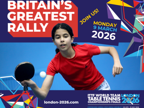 If your club or group runs a table tennis session on Mondays and you would like to be part of this milestone event, sign up to be part of Britain’s Greatest Rally at https://www.tabletennisengland.co.uk/join-us-for-britains-greatest-rally/