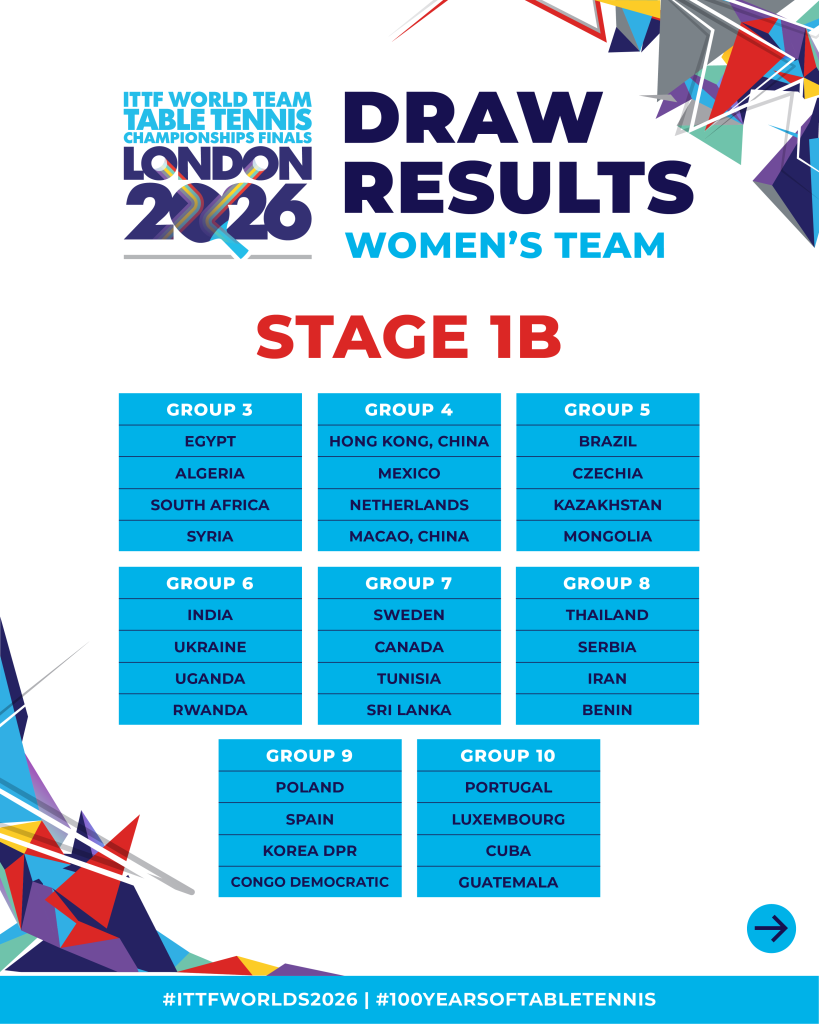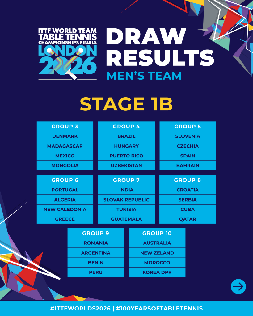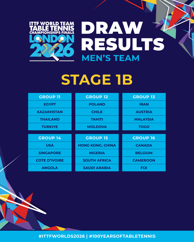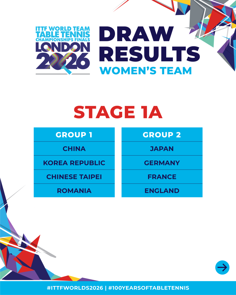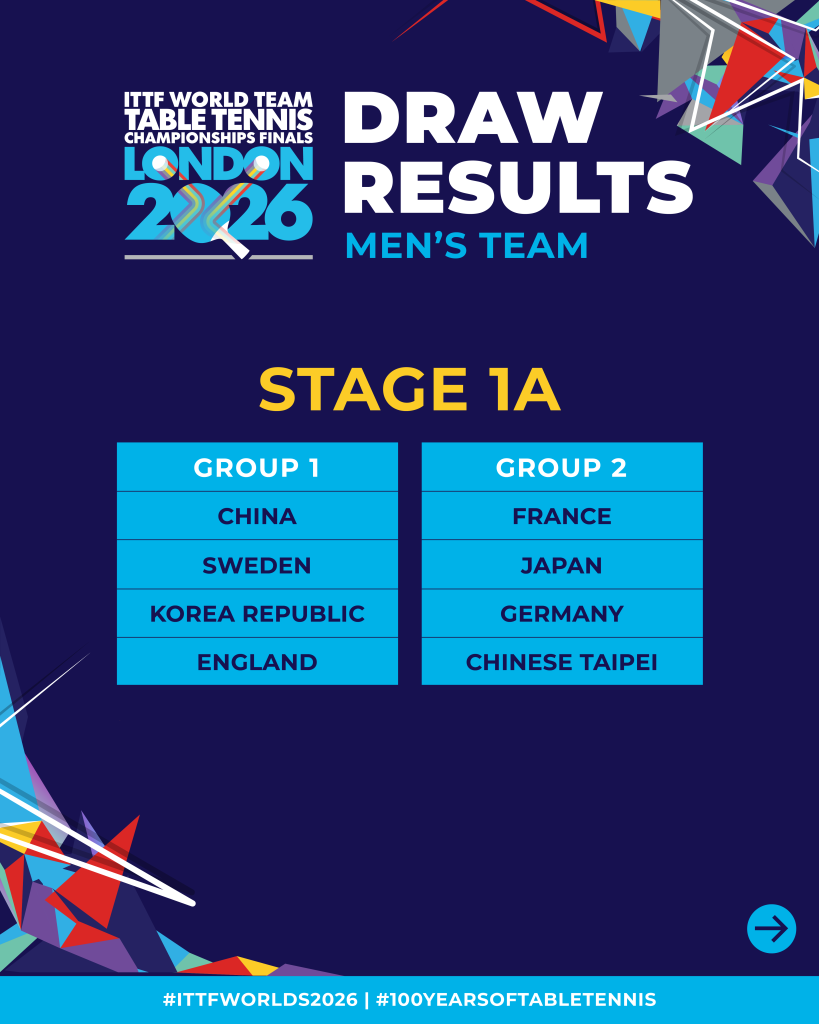 England have discovered their opponents for the ITTF World Team Table Tennis Championships Finals London 2026.
