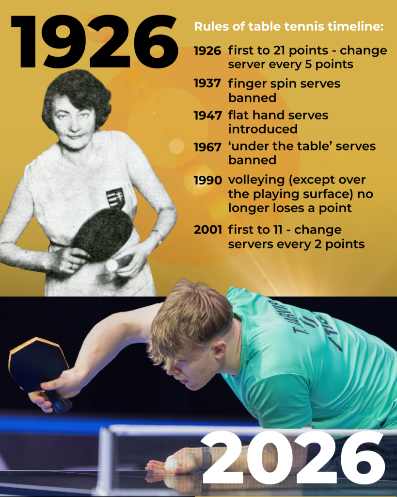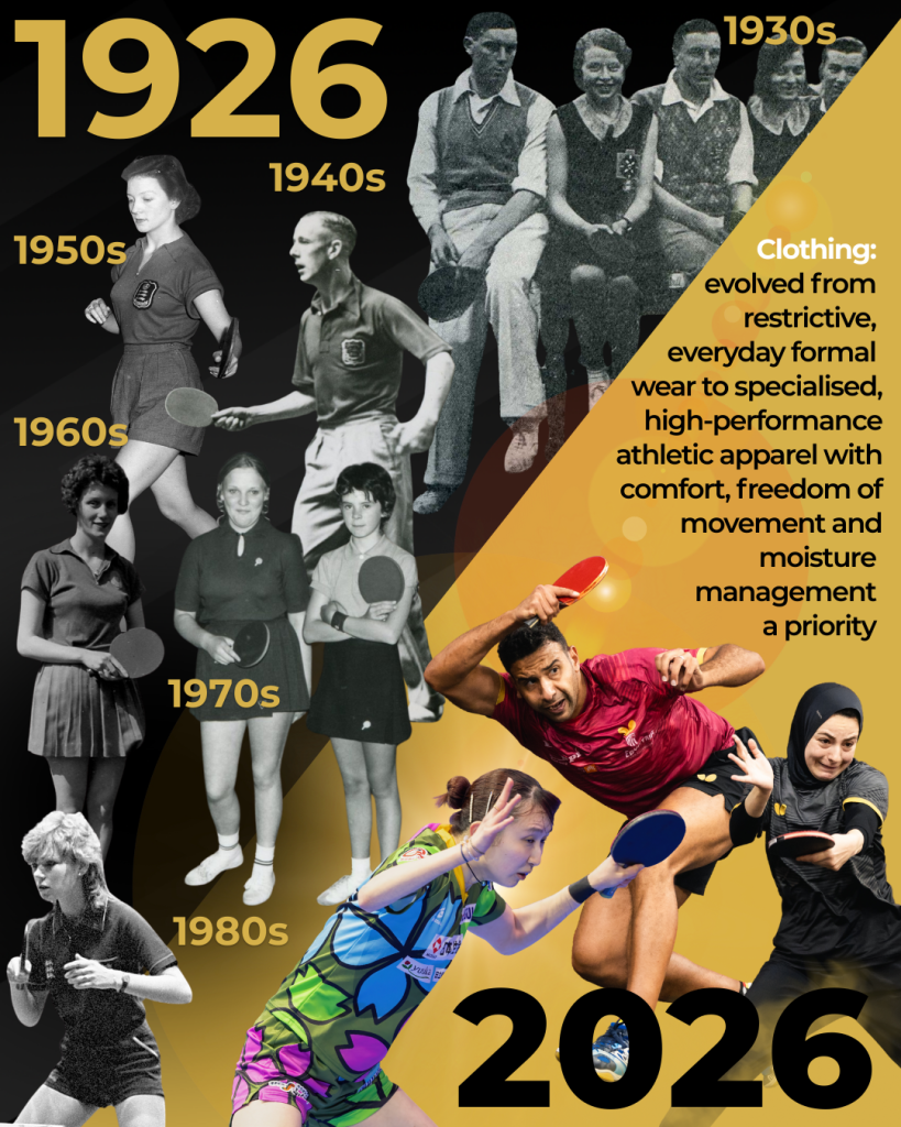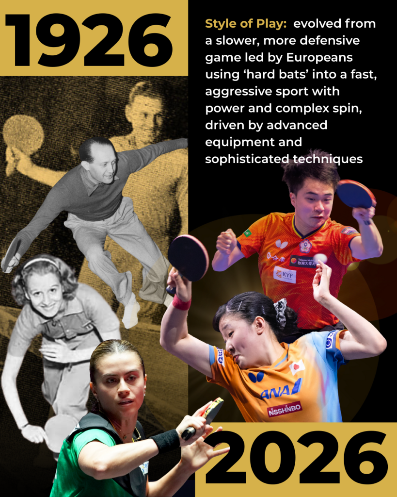 From waistcoat-clad men wielding sandpaper bats to male and female athletes in sponsored kit and armed with state-of-the-art equipment – the ITTF World Team Table Tennis Championships have come a long way since 1926.