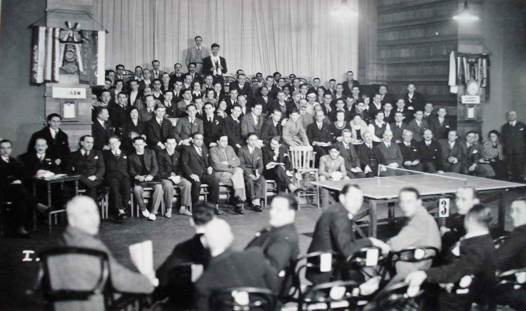 There wasn’t much joy for England in the Men’s Singles either. Findon, Hyde and Millar were the best placed players reaching the round of 16. Findon lost to Hazi 20, -16, 18, 16, Hyde lost to Sandor Glancz, Hungary, 18, 17, 16 and Millar lost to Alojzy ‘Alex’ Ehrlich, Poland, -19, 13, 21, 19. Hales, Wilmott and Knibbs went out in the round of 64 and Foulis and Haydon in the round of 128. Ivor Montagu scratched from the singles. Victor Barna was dominant again although the all-Hungarian final was well fought by Laszlo Ballak, the final score -12, 14, -15, 5, 14. Both losing semi-finalists were also Hungarian, Hazi and Miklos Szabados.