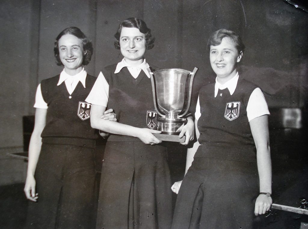 The strong German team, Anita Felguth, Annemarie Haensch, Astrid Krebsbach and Mona Ruster-Muller, were the first to hold the Corbillon Cup. Hungary were in second place with Magda Gal, Maria Mednyanszky and Anna Sipos, and Czechoslovakia third with Marie Kettnerova, Marie Smidova and Jozka Veselska. England finished fourth.