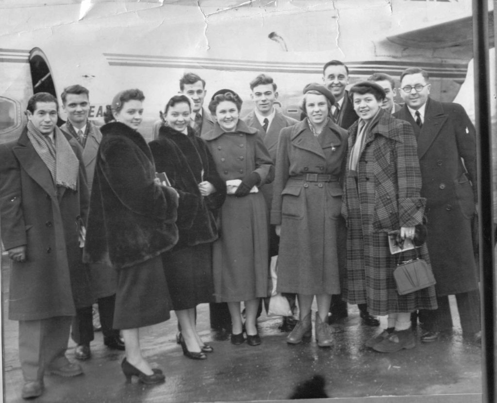 Kathleen (front right) with an England squad in 1954, including Richard Bergmann (left), the Rowe twins (third and fourth left) and Johnny Leach (fourth right)