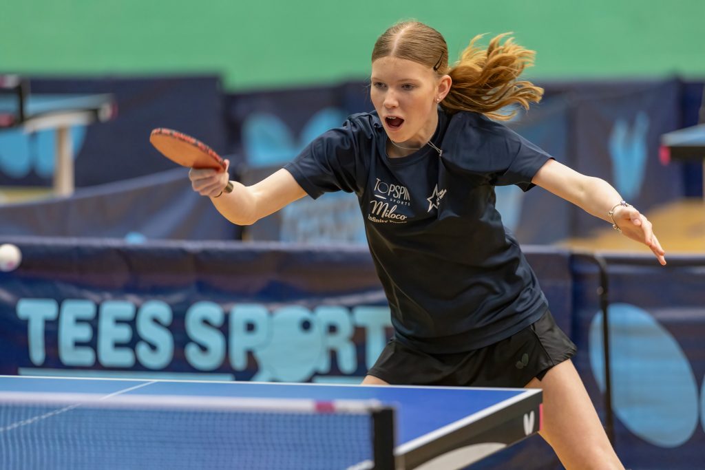 12.04pm: Girls’ Group 6 – Bly Twomey went through in first place as expected, but only after surviving a tough clash with Zoe Gonpot, Twomey winning 3-1 (9-11, 11-6, 7-11, 11-6, 11-8). Evie Knaapen went through in second, as expected.