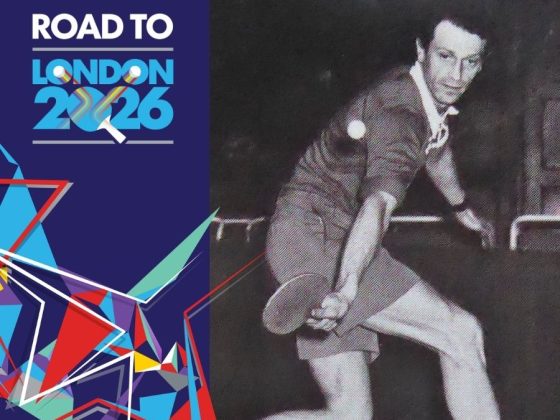 England No 1, world No 16, Ernie came a long way from his roots in Whitechapel, London where he was born on 1 August 1912. He was one of the few players who represented England in the Swaythling Cup and internationals both before and after the war. In 1938 the team were fifth, in 1939 they were ninth, in 1947 the team were seventh and in 1948 it was a fifth-place finish. His best individual result was in 1939 in the Men’s Doubles with a quarter-final place with Ken Stanley.