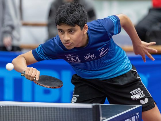 Aarav Parihar (pictured above, photo by Michael Loveder) was competing in the Under-15 and Under-17 Boys’ Singles and qualified for the main draw in the younger age group, going out in the round of 32 to Zhang Heliang of China.