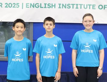 Young English trio Jayden Xuan Chen, Dimitar Dimitrov and Amber Lemmon have joined 37 of the world’s best 12-year-olds at ITTF World Hopes Week at the Elite Training Centre in Sheffield.
