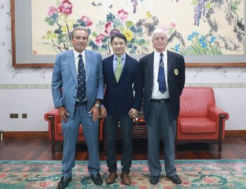 Alan Hydes, part of the England team which took part in the Ping Pong Diplomacy tour, visited the Chinese Embassy in London to commemorate the tour.