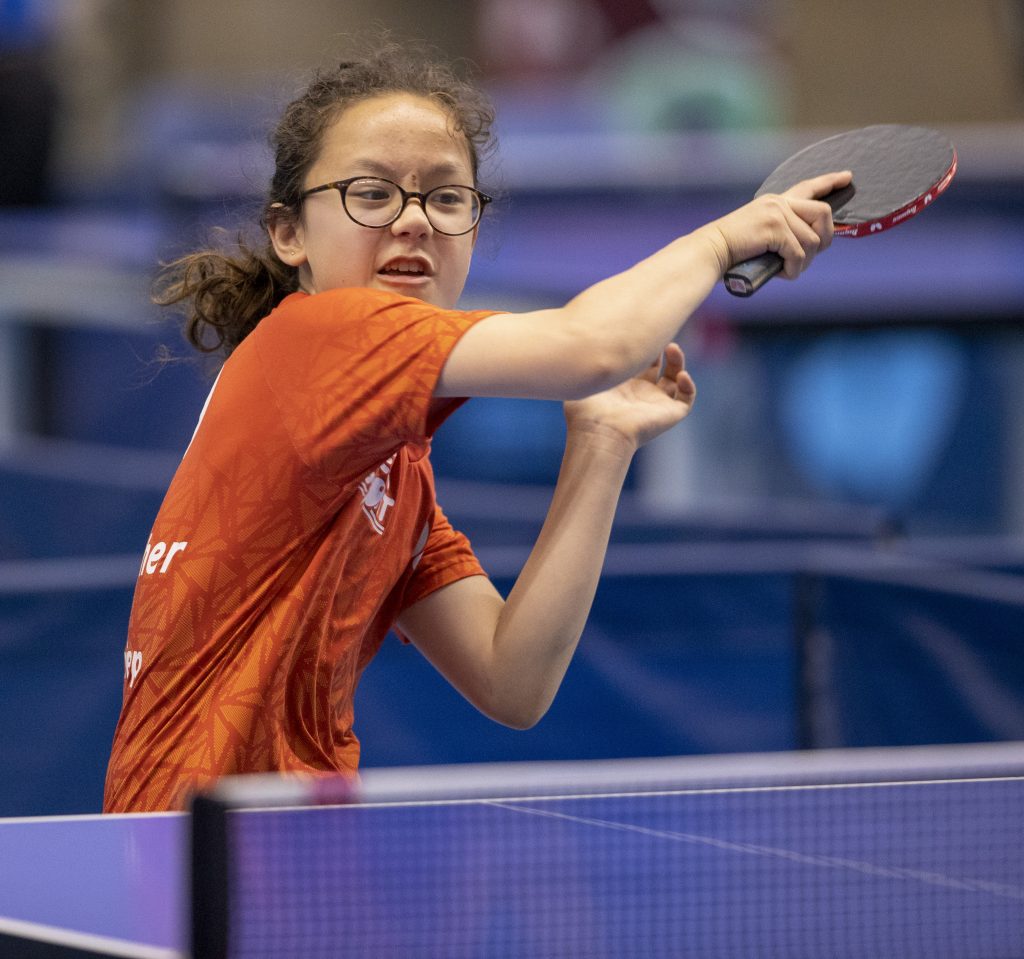 No problem for top seed Alyssa Nguyen in Group 1 and she was joined in the knockouts by Laura North, who won her other four matches, including a fine comeback 3-2 (9-11, 9-11, 12-10, 11-6, 11-2) victory over Sophie Howe and another five-set win against Violet-Lily Marquis – that one by a scoreline of 11-7, 11-4, 8-11, 4-11, 11-8.