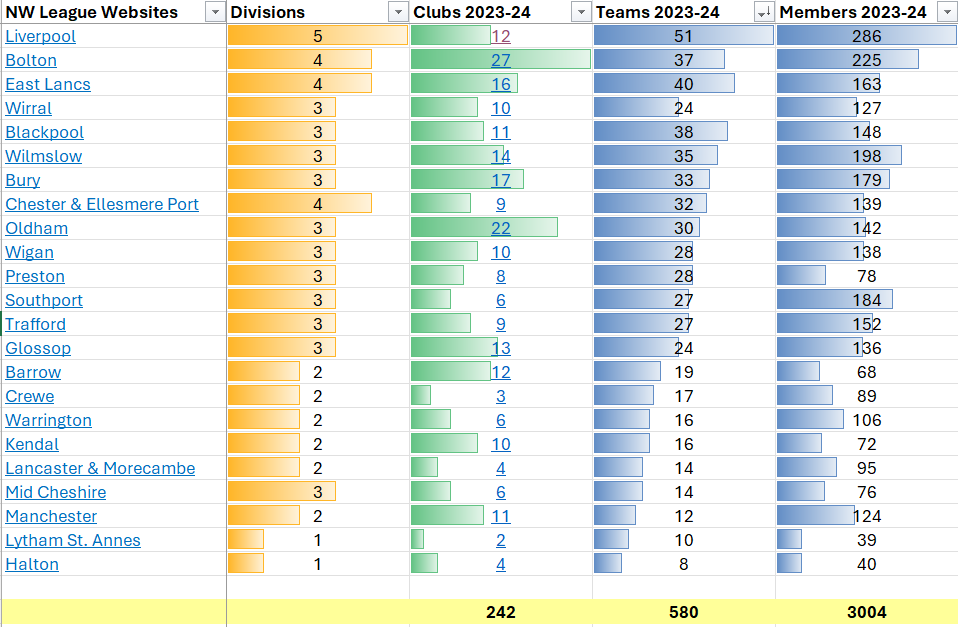 Now is the time of year many clubs start the process of registering players and teams for their winter leagues, which run from September to March each season. In the North West we have 23 leagues ranging in size from 5 divisions of 50 teams to just one of 8 teams (see below), all playing their part in providing weekly competitive play at a local level.