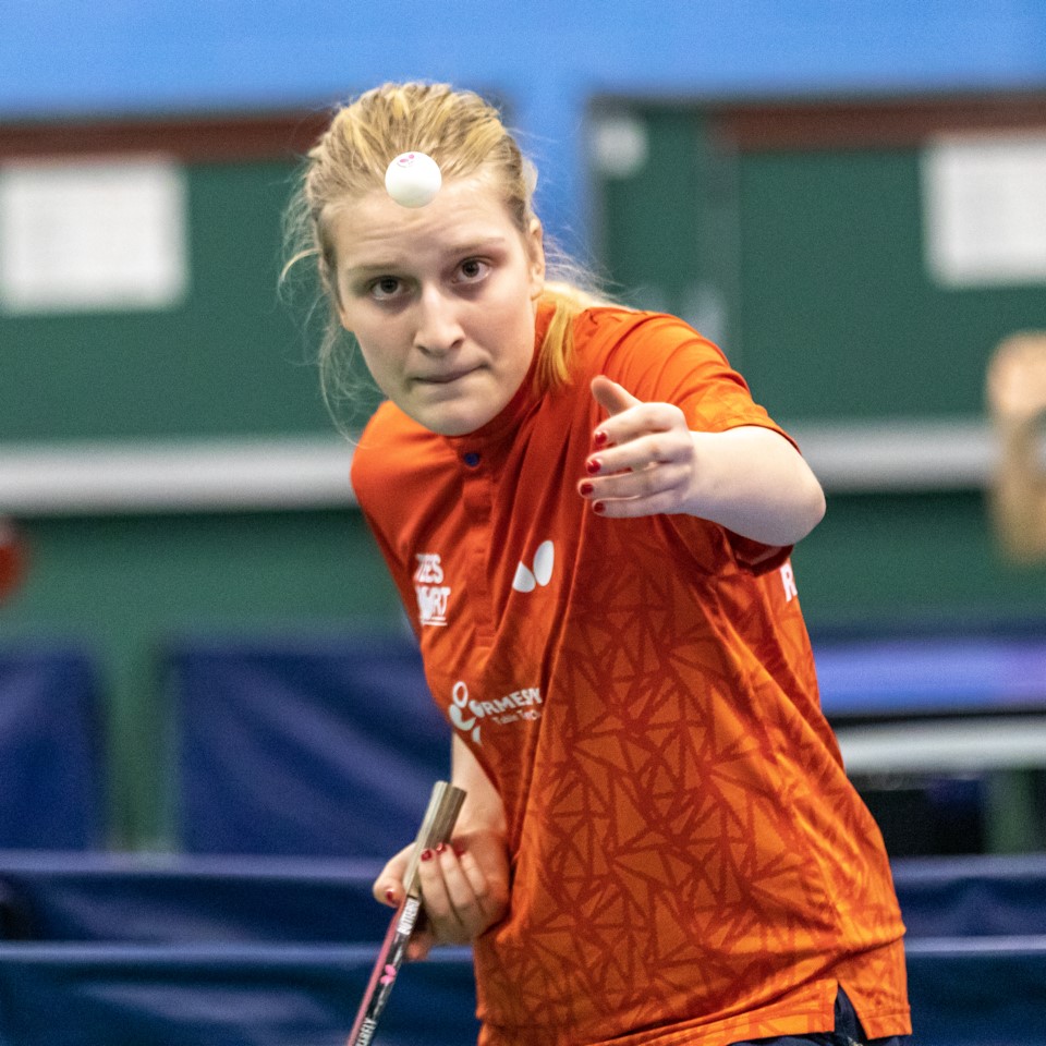 The Ormesby results against TTC Hercogs and Fusion were achieved by wins from Karina Le Fevre, Ella Pashley (pictured above) and Rebecca Savage. Both matches were closer than the results suggest. Against TTC Hercogs Karina le Fevre beat Inta Zdanovska, Ella Pashley excelled beating TTC Hercogs number one, Anzelika Petrauskiene, in 5 games. The rules of the Trophy state that if a match goes to 5 games then the last game is up to 6 with sudden death at 5-5. Ella Pashley won at 6-3 in the 5th. Rebecca Savage also played a 5th set beating Ieva Lepse also by 6-3.