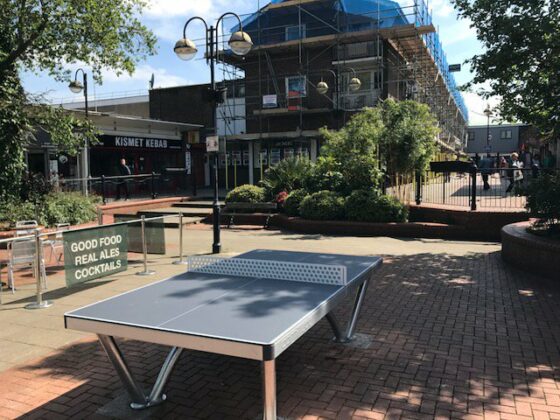 Free outdoor table. Pick bats and balls up from the Brewery Shades Public House.