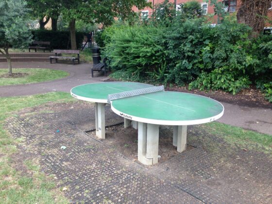 Two tables located within Butterfield Park. One can be found within the playground and the other just set back from here behind Wordsworth Road Baptist Church.