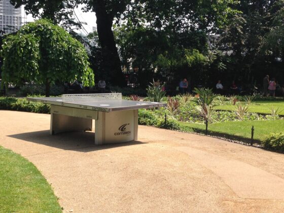 Two tables located either side of the Statue of Henry Bartle Frere.