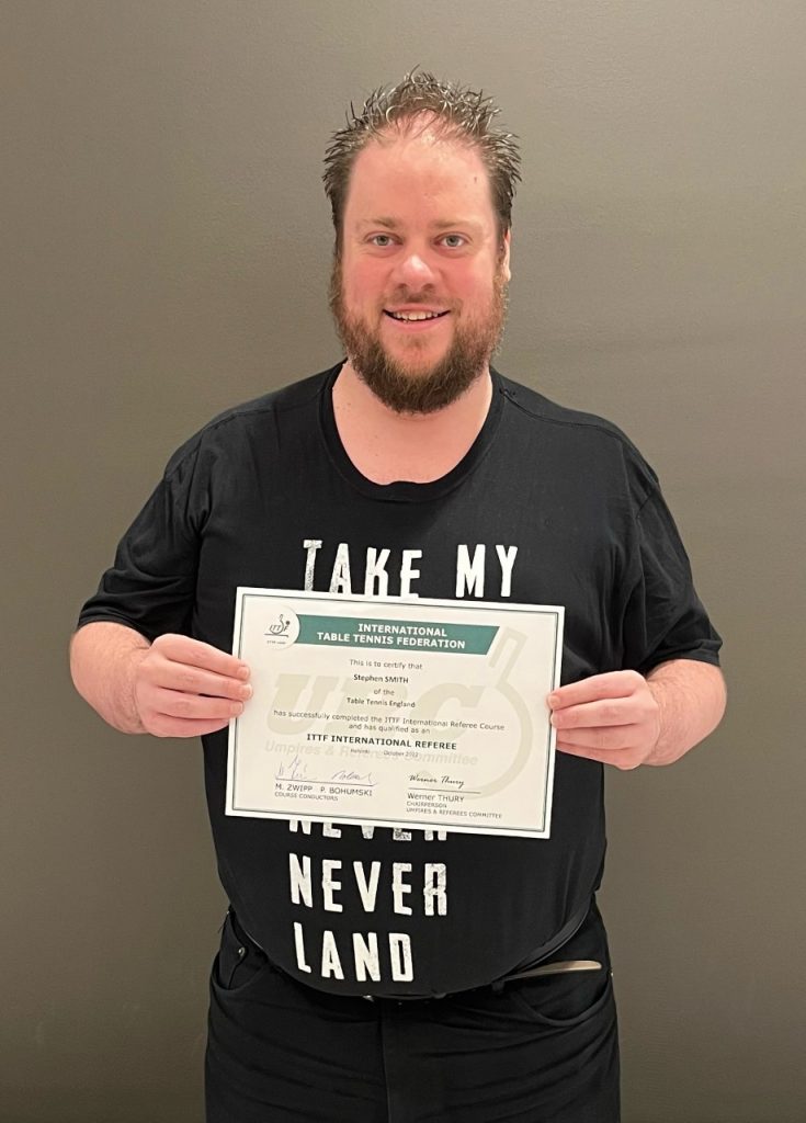 Smith, 41, has been involved in table tennis since his youth, added: “Having been a National Referee for 13 years this was the next step in progression, though it has been some time coming.