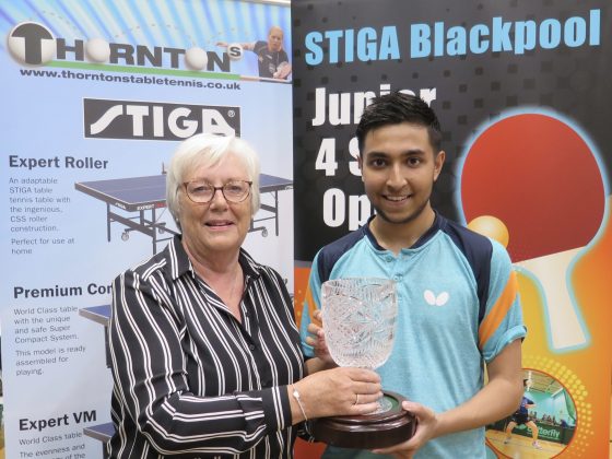 Thanks to STIGA and Thornton’s Sports for their sponsorship of the event, Blackpool Borough Council and the management and staff of Blackpool Sports Centre, without whose support we couldn’t run the event. Thanks also to the organising committee and the volunteers, officials and umpires in attendance over the weekend. Hope to see you next year.