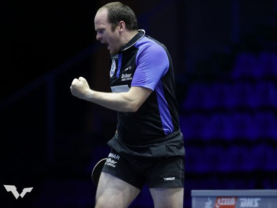 Drinkhall (pictured above), currently ranked 79, beat the world No 42 3-2 (9-11, 11-8, 6-11, 11-7, 11-7), to make it two big wins on the day – in the previous round in the morning he emphatically sunk China’s Liu Dingshuo (WR 48) 3-0 (11-7, 11-9, 11-4).