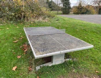 Traditional pub with table tennis table in enclosed part-covered beer garden.