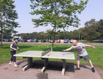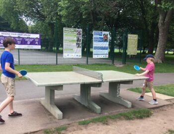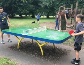One concrete table, adjacent to the Harthills youth centre.
