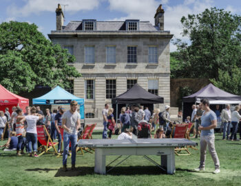 There is one outdoor table located at Drakes Place, collect bats and balls from the cafe.