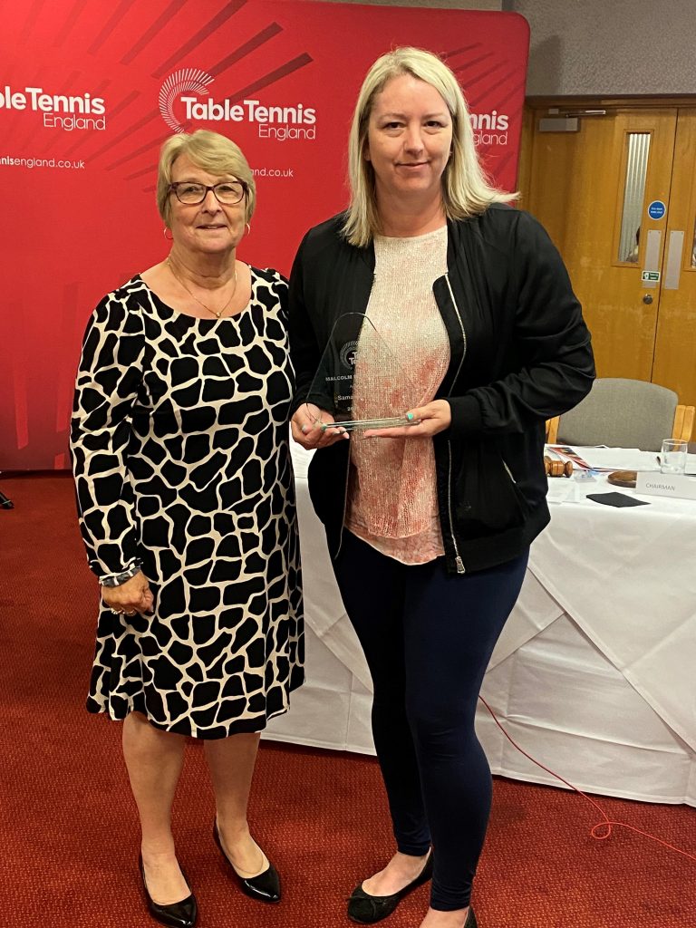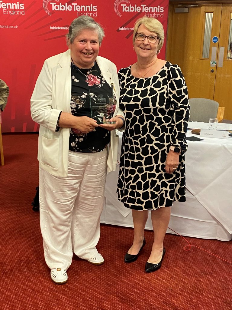 Pictured below Sandra Deaton, Table Tennis England Chairperson, presents honours to: