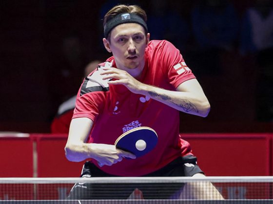 As controlled as Pitchford had been in defeating Robert Gardos in the first round last night, he was inconsistent in today’s last-32 match in Linz, Austria, struggling to find his game for more than a few points at a time and littering his performance with unforced errors.