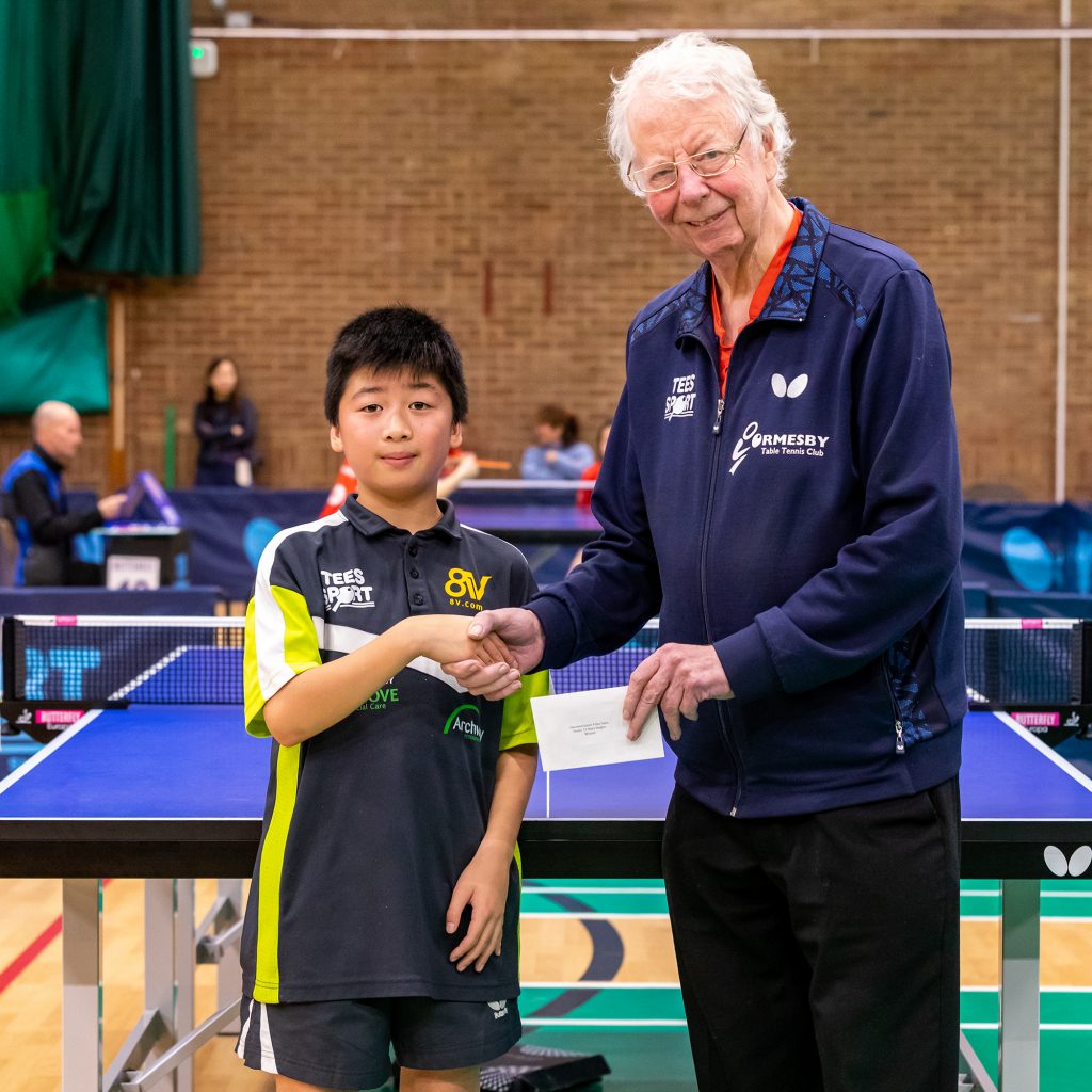 Under-11 Boys’ Singles: Zihan Lin (Cambs) bt Lewis Wu (Cambs) 9, -4, 8, 6